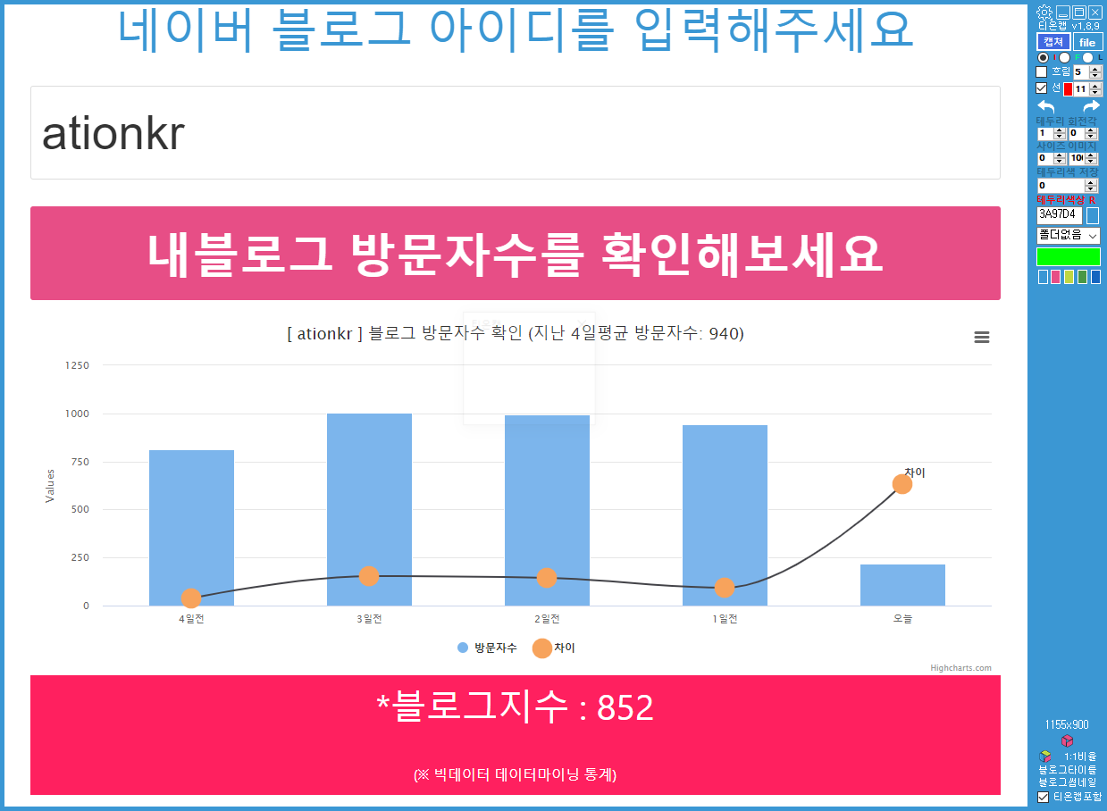블로그 지수 확인 네이버 블로그 방문자수 확인 티온지수 블로그 점수 레벨 확