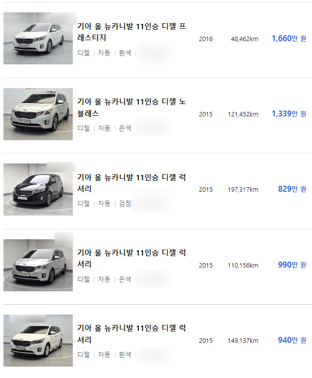 | 올 뉴 카니발 럭셔리 | 829만원 ~ 1,120만원 |