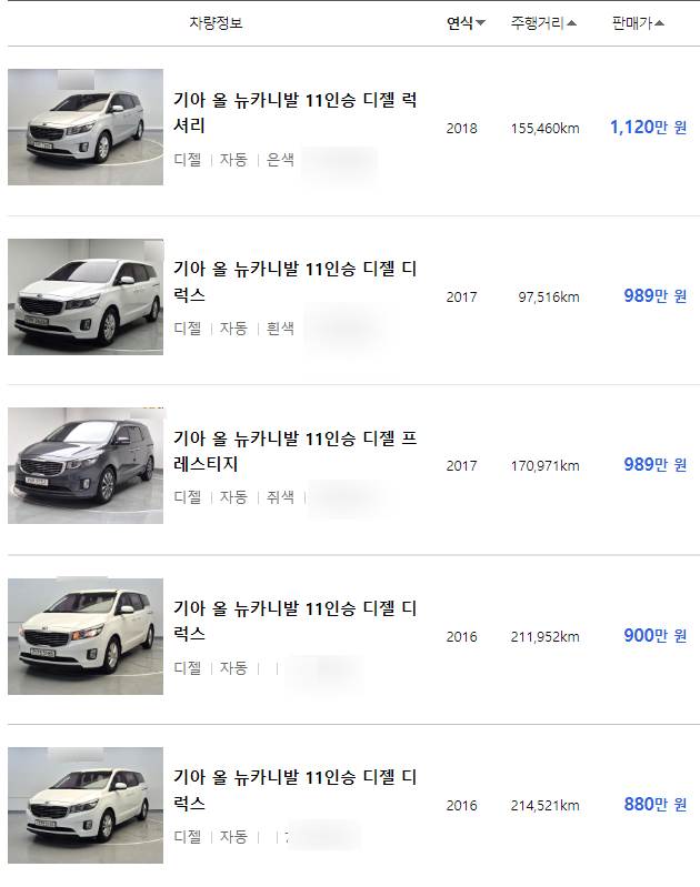 '카니발 11인승 가격'을 고려할 때, 기아 올 뉴 카니발 11인승 디젤 역시 인기 있는 모델 중 하나입니다. 이 차량은 2018년부터 2015년까지 다양한 연식의 모델이 있으며, 각 연식에 따라 성능과 가격이 차별화됩니다.